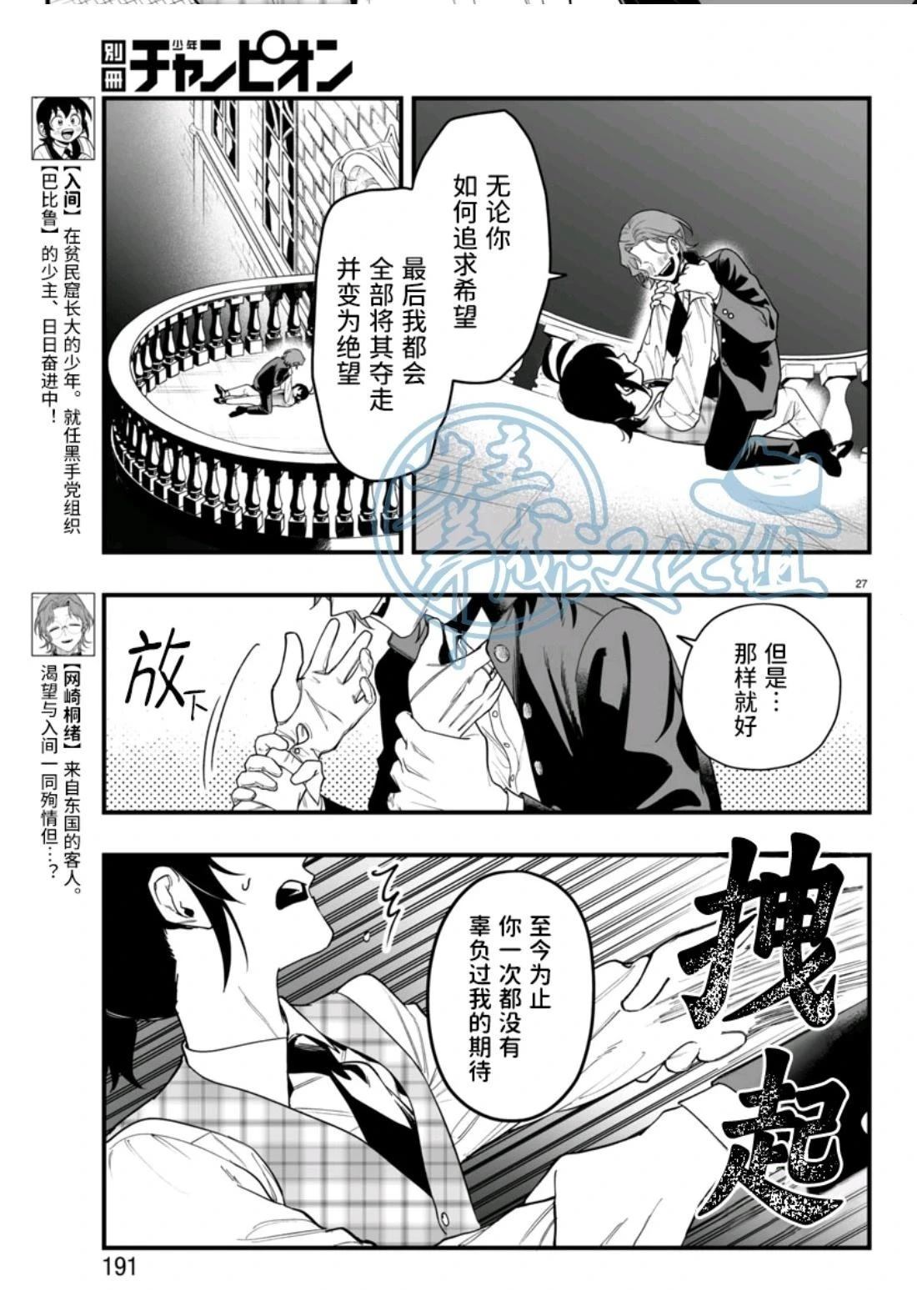故事讲述在平民窟长大的善良少年·入间,某天在家门口救起了流血倒地的老人。老人是黑手党「巴比尔斯」的一员·沙利文,并请入间从这一天始成为他的孙子。对别人的「请求」「拜托」完全无法拒绝的老好人入间,由此意外的成为了黑手党的一员。