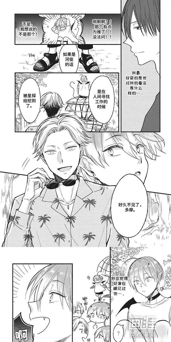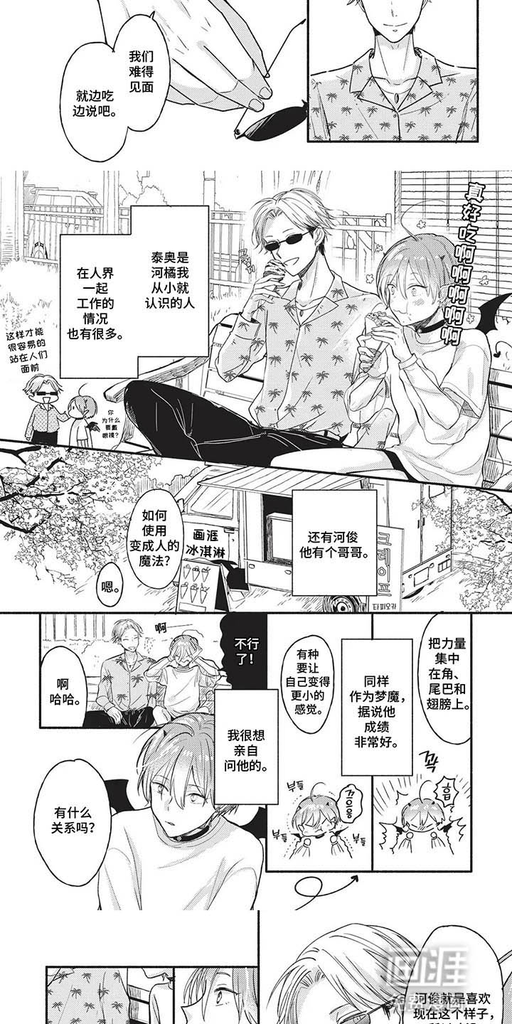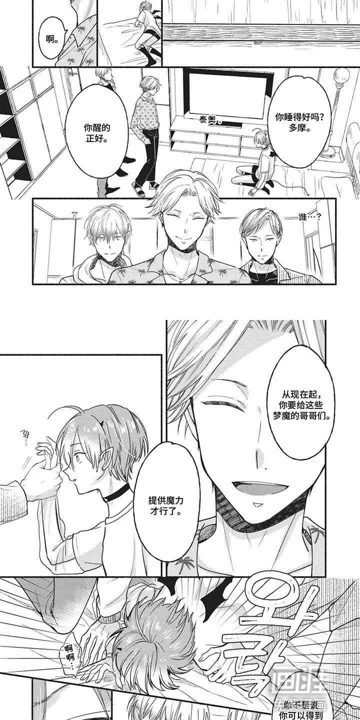 多摩是一名魅魔,他在人类熟睡的时候开始工作。但是在他工作的时候那个男人突然醒了,并且人类专用睡眠喷雾对他不起效。直到那个男人掀起头发,多摩才发现他的眼睛和人类不一样……