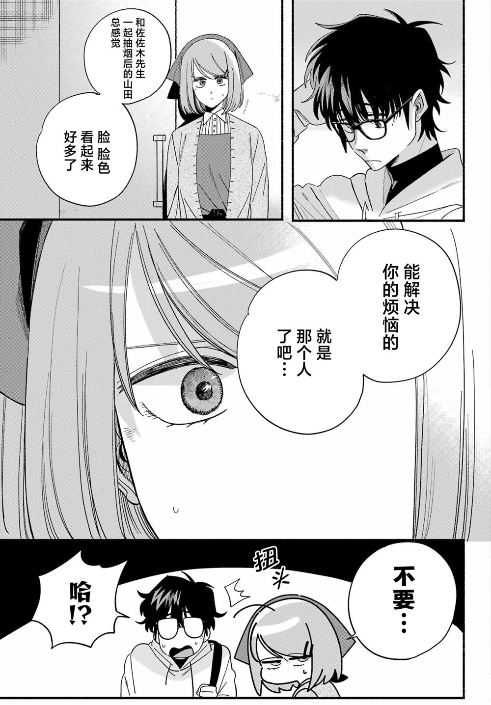 佐佐木是一名奔波于社畜街道,满身疲累的中年男性,每天能够治愈他的只有香烟和他常去的超市的女性店员——山田小姐的灿烂笑容。在某个忙碌一天疲惫不堪的夜晚,前来寻求治愈的佐佐木不仅没有看到山田小姐,连吸烟的地方也都找不到了…。消沉的佐佐木突然听到有人对他说「吸烟来这边」,循声望去,映入眼帘的是一名奇妆异服[]服、自称田山的女孩——[-折叠]