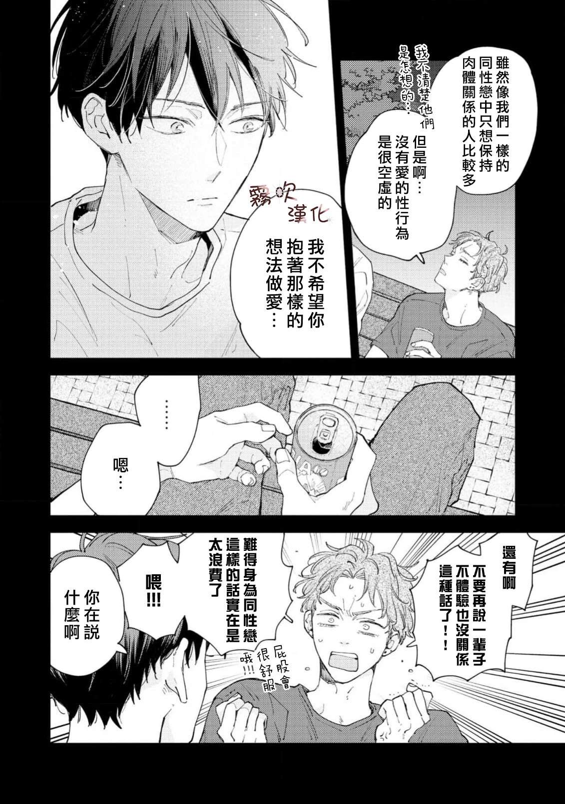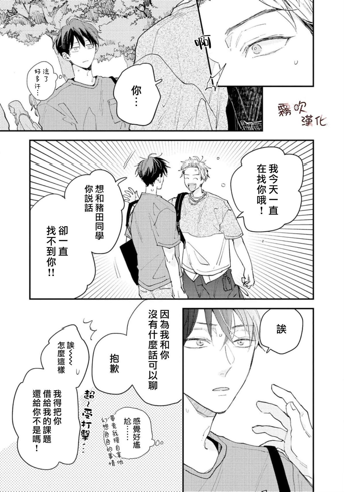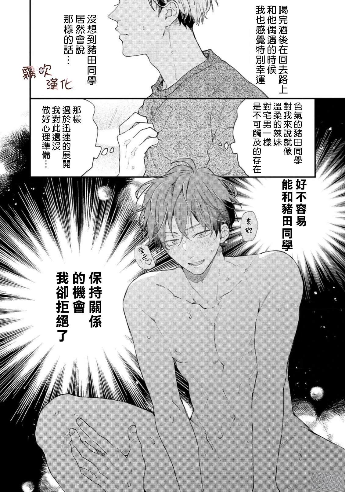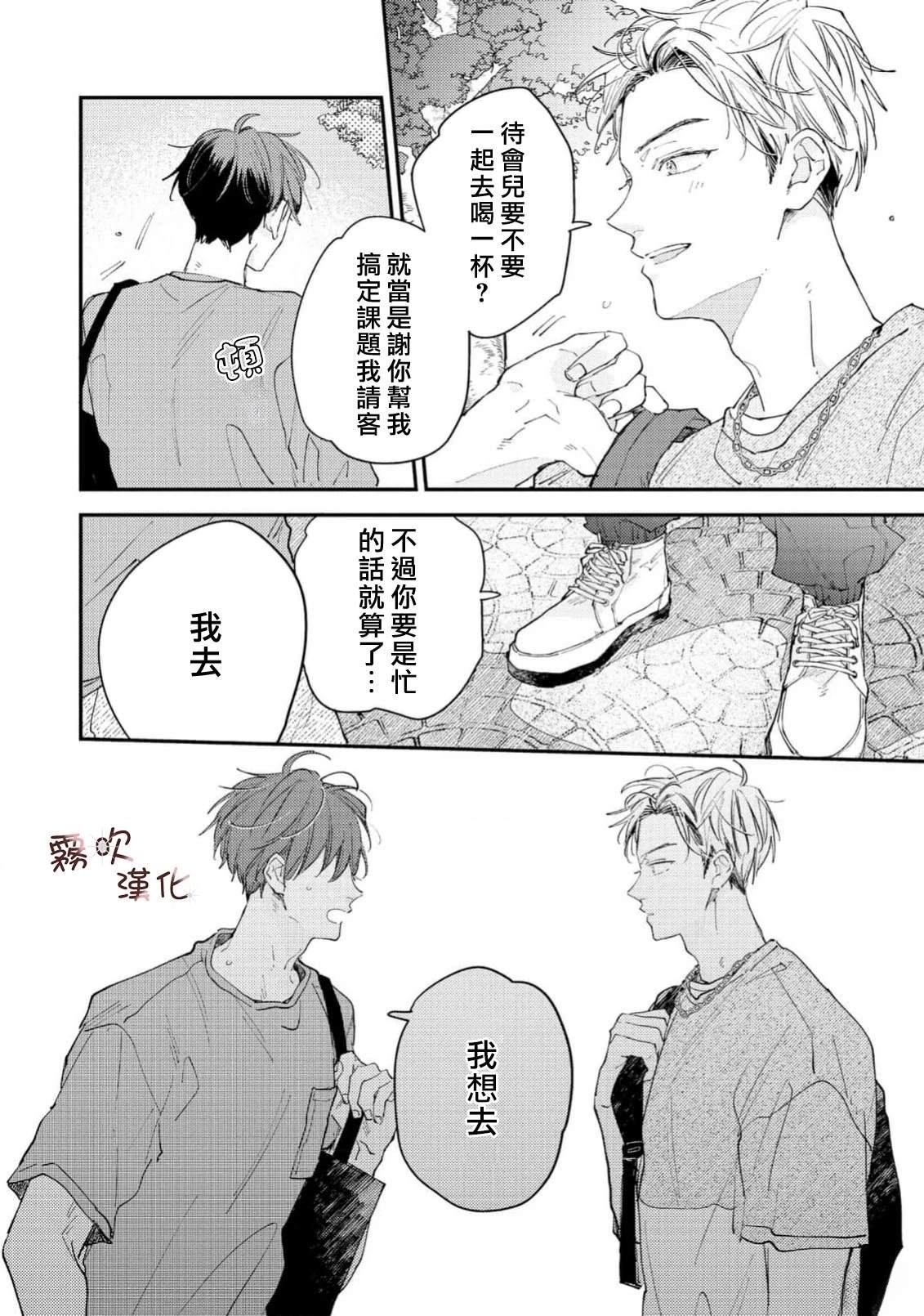 单身时长=年龄,因眼神凶恶和性格冷淡而过著独行侠大学生活的猪田要。 虽然意识到自己只能喜欢男人,但被学习和打工填满的日常让他既没心思也没时间恋爱。 在打工的同志酒吧妈妈桑和客人们的建议下, 他决定先找个能给他“第一次“的人, 脑海中浮现的竟是帅气同级生·萩田优作的身影。 正当他幻想著被[]被传闻中“来者不拒“的优作拥抱时, 竟偶然撞见了本人! “你帮我做课题,有什么要求尽管提?“对方问道—[-折叠]