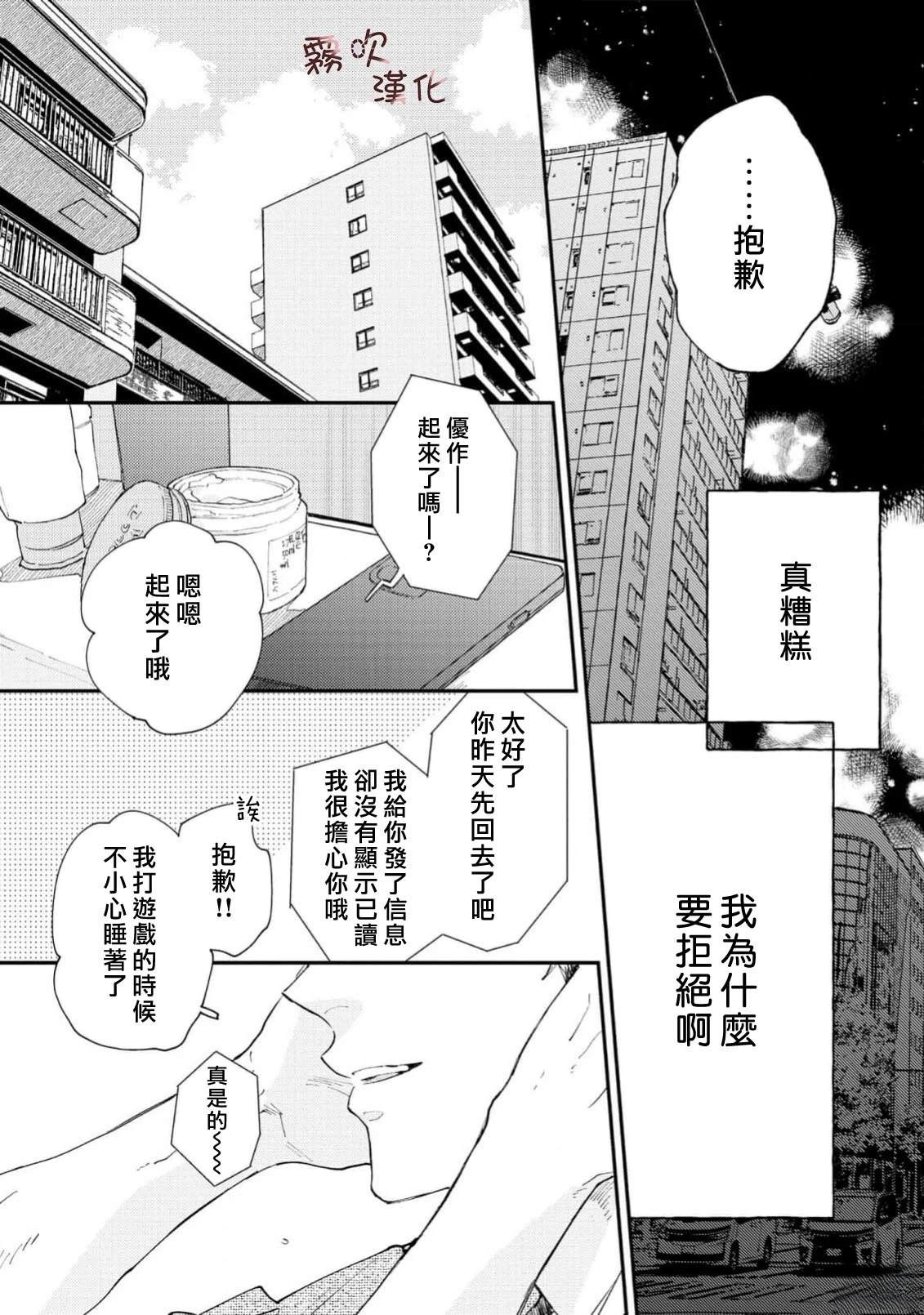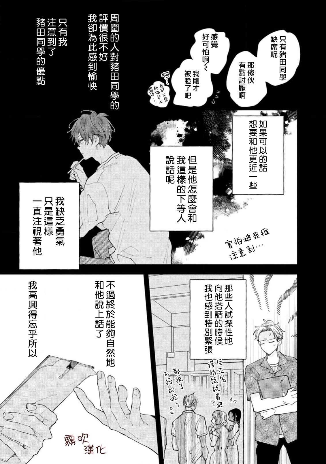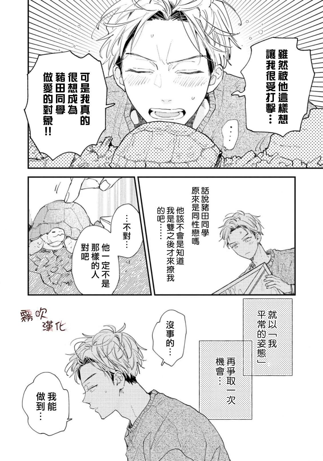 单身时长=年龄,因眼神凶恶和性格冷淡而过著独行侠大学生活的猪田要。 虽然意识到自己只能喜欢男人,但被学习和打工填满的日常让他既没心思也没时间恋爱。 在打工的同志酒吧妈妈桑和客人们的建议下, 他决定先找个能给他“第一次“的人, 脑海中浮现的竟是帅气同级生·萩田优作的身影。 正当他幻想著被[]被传闻中“来者不拒“的优作拥抱时, 竟偶然撞见了本人! “你帮我做课题,有什么要求尽管提?“对方问道—[-折叠]