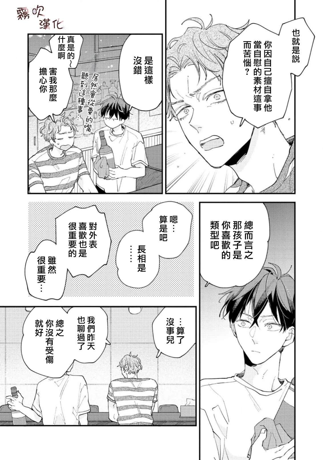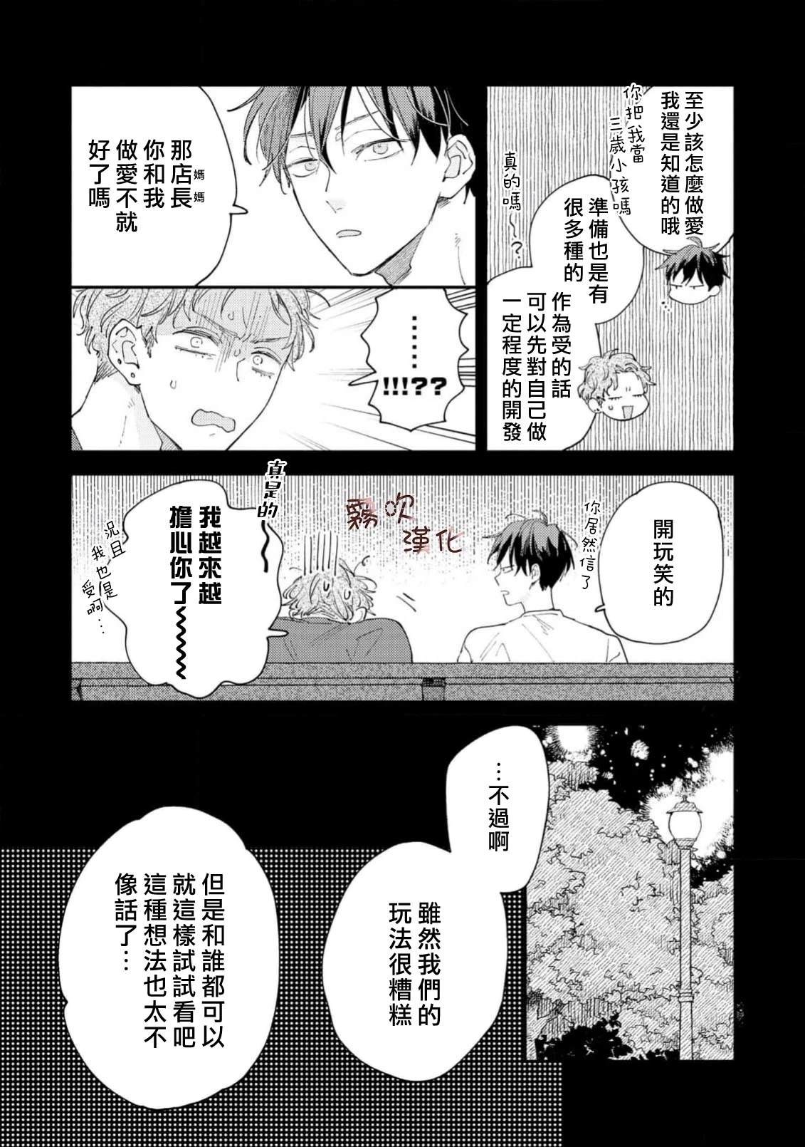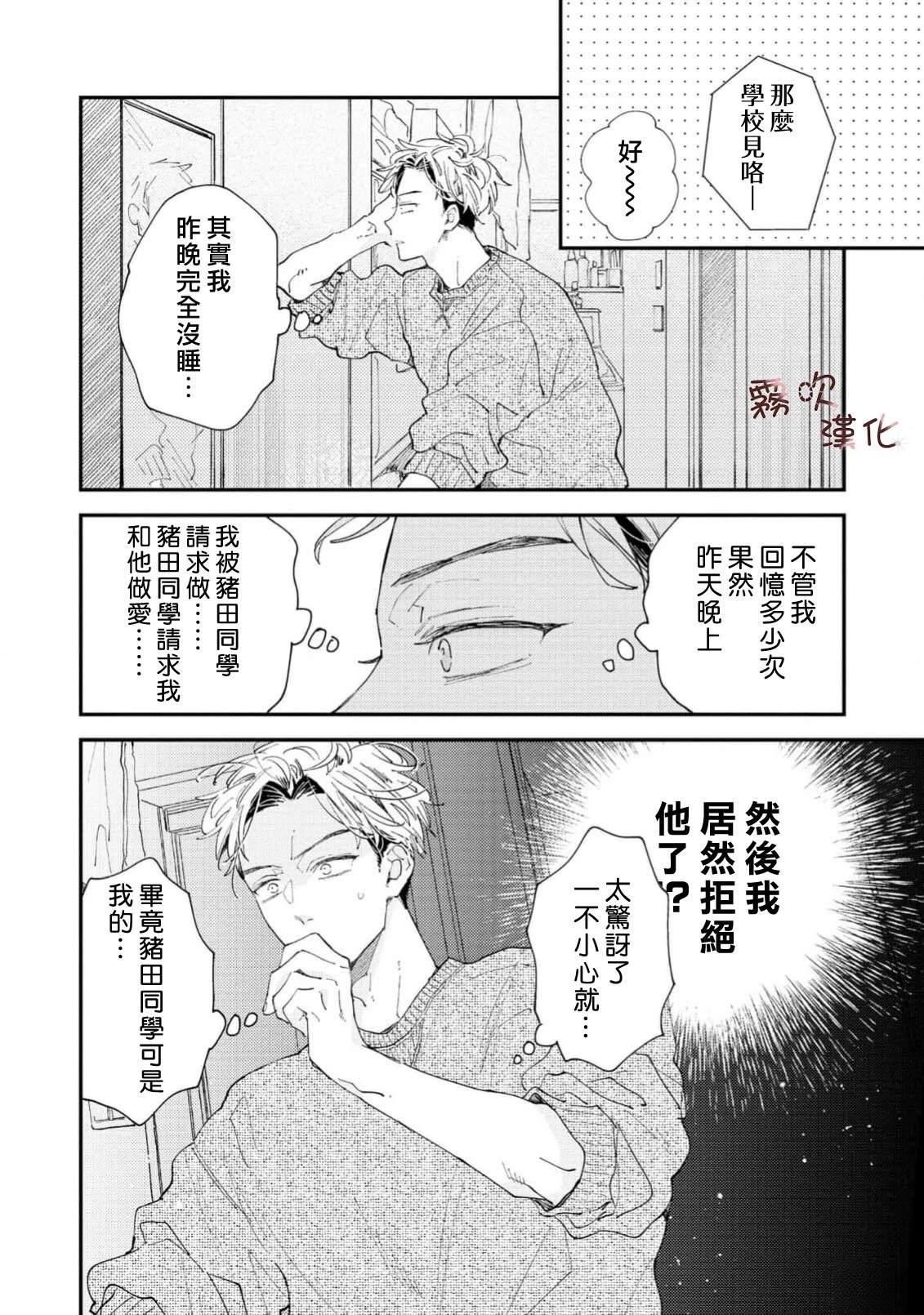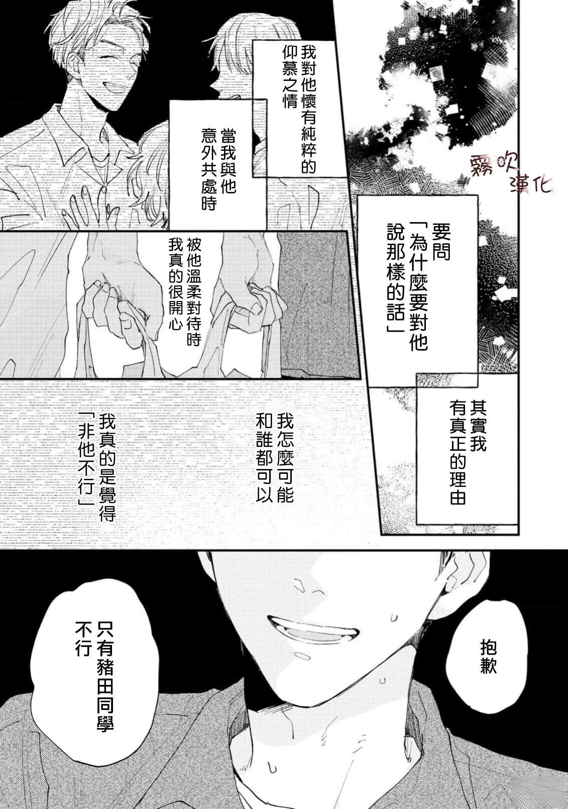单身时长=年龄,因眼神凶恶和性格冷淡而过著独行侠大学生活的猪田要。 虽然意识到自己只能喜欢男人,但被学习和打工填满的日常让他既没心思也没时间恋爱。 在打工的同志酒吧妈妈桑和客人们的建议下, 他决定先找个能给他“第一次“的人, 脑海中浮现的竟是帅气同级生·萩田优作的身影。 正当他幻想著被[]被传闻中“来者不拒“的优作拥抱时, 竟偶然撞见了本人! “你帮我做课题,有什么要求尽管提?“对方问道—[-折叠]