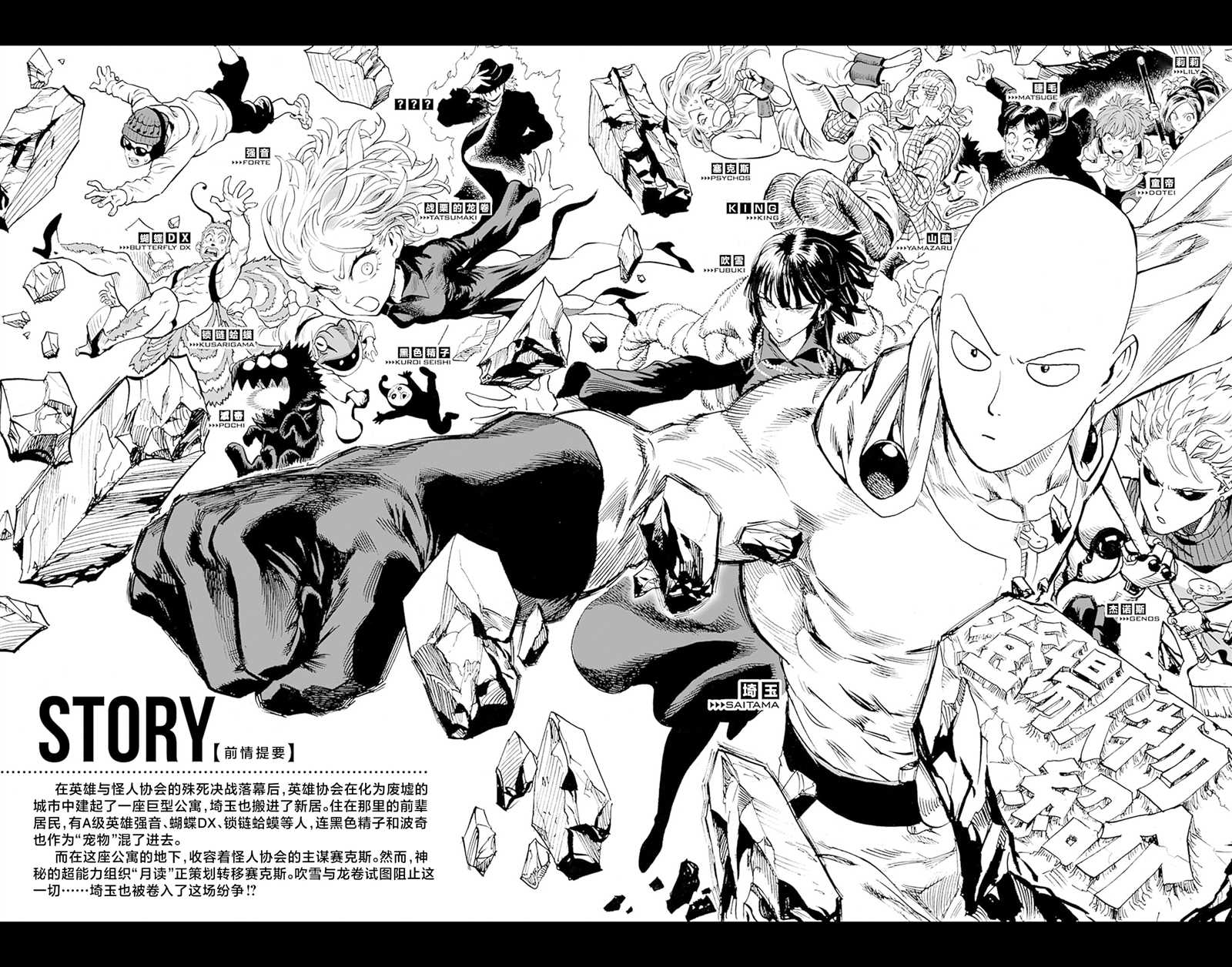 主人公埼玉原本是一名整日奔波于求职的普通人。3年前的一天偶然遇到了要对淘气少年下杀手的异变螃蟹人后,回忆起年少年时“想要成为英雄”的梦想,最终拼尽全力救下了淘气少年。之后通过拼命锻炼,埼玉终于脱胎换骨获得了最强的力量,但同时失去了头发成了光头。在独自做了一段时间英雄后,正式加入英雄协会,与众多英雄一[]一起始了对抗各种怪人以及恶势力的生活…[-折叠]
