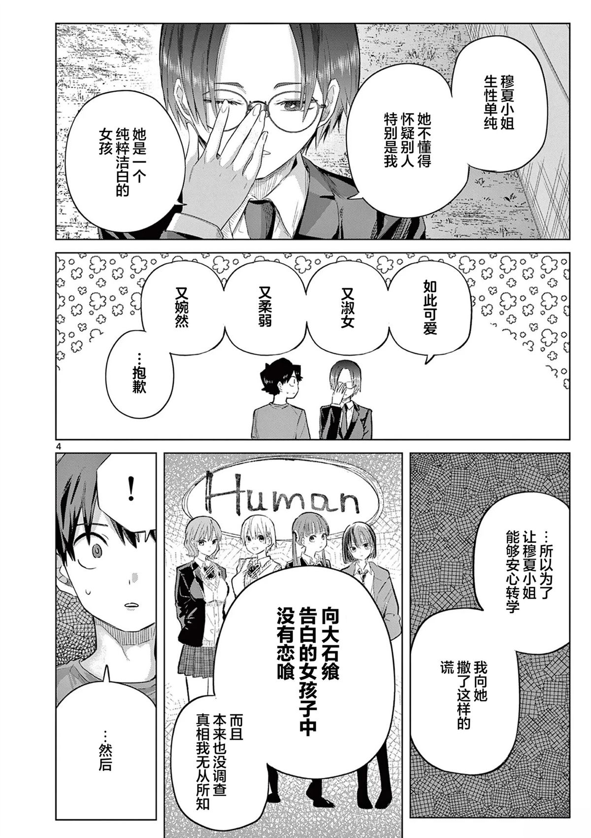 不太擅长面对女性的男子高中生·大石飨。刚进高中,就被4个女生告白。因“没有缘由”而动摇,当然,那是有理由的——震撼大脑的爱情搞笑悬疑剧幕。