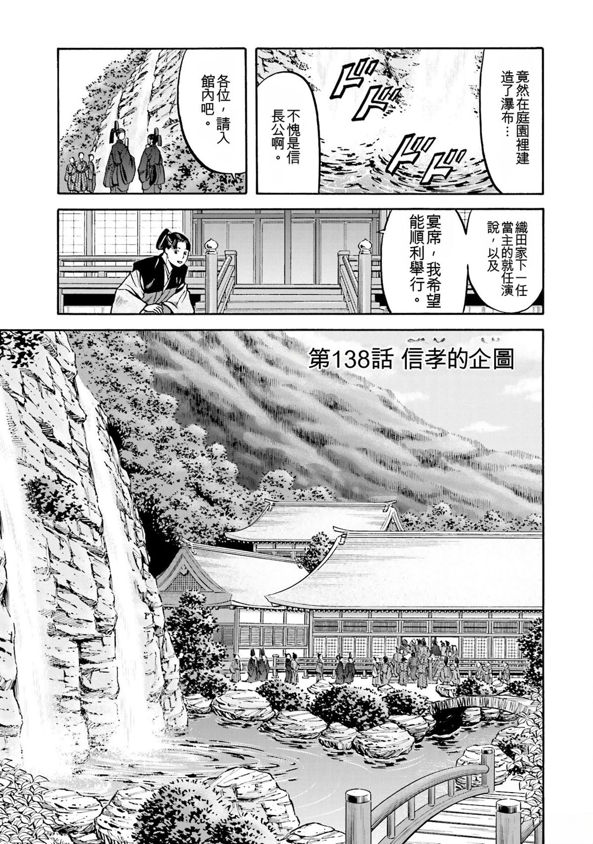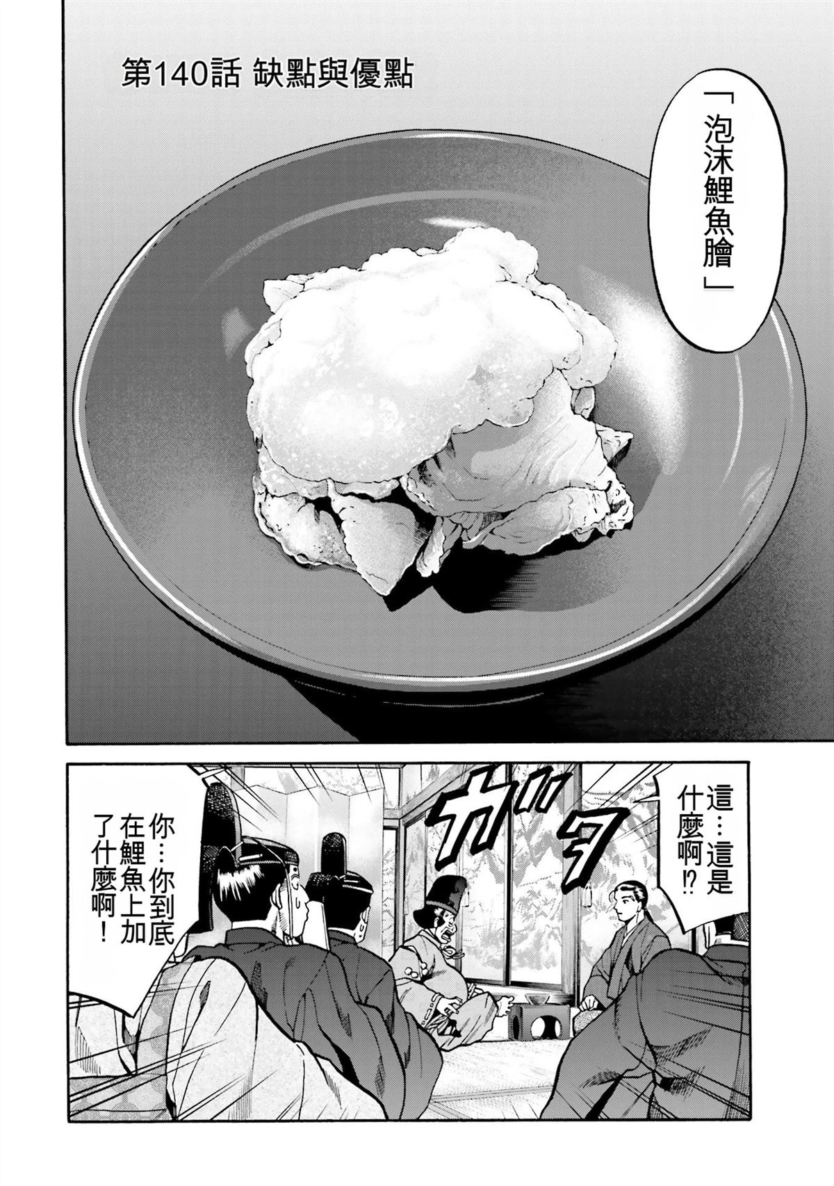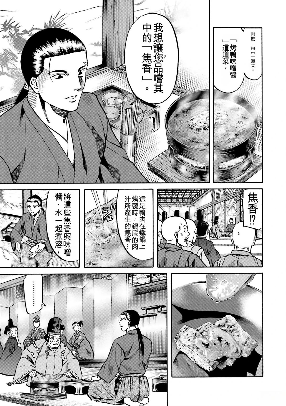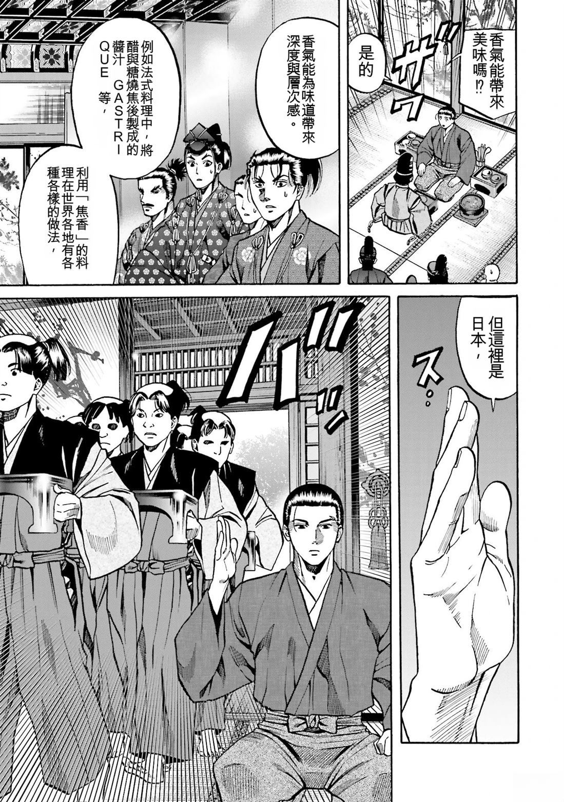 信长的主厨漫画 ,从昏迷中醒来的年轻人“健”,发现自己竟然身处于战国时代! 平成年间出生的年轻厨师,在这战国乱世之中,要如何生存下去? “健”有著自己的觉悟。 放马过来吧,战国! 我绝对要活下去!
