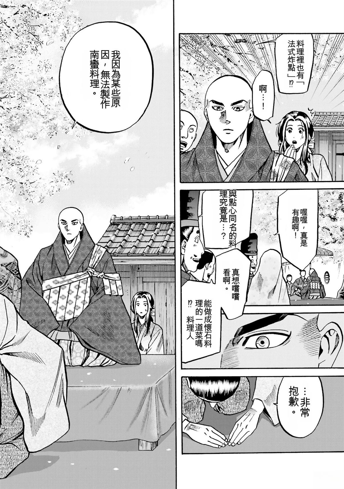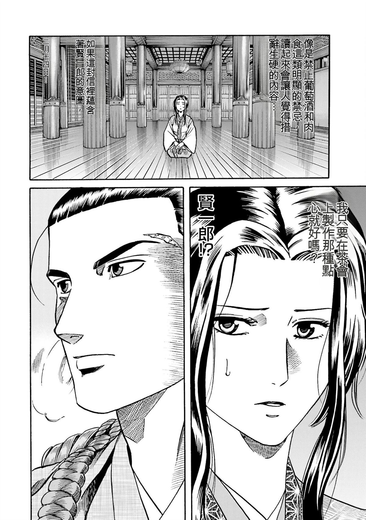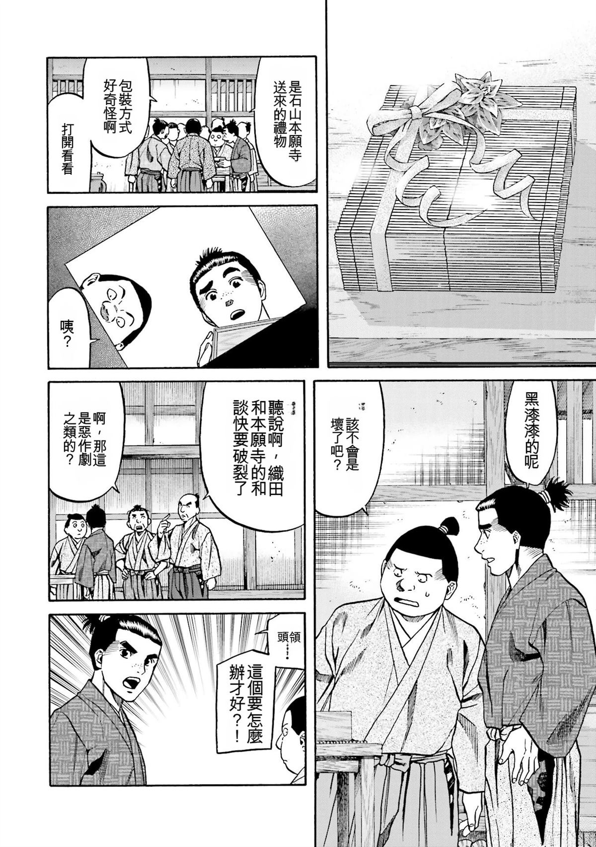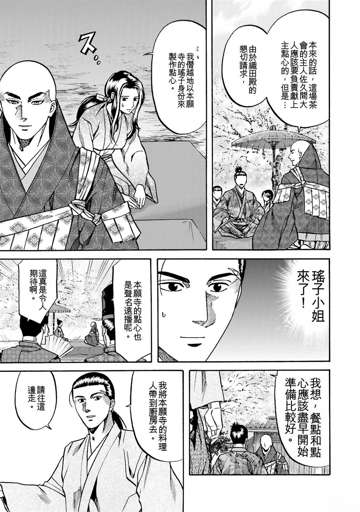 信长的主厨漫画 ,从昏迷中醒来的年轻人“健”,发现自己竟然身处于战国时代! 平成年间出生的年轻厨师,在这战国乱世之中,要如何生存下去? “健”有著自己的觉悟。 放马过来吧,战国! 我绝对要活下去!
